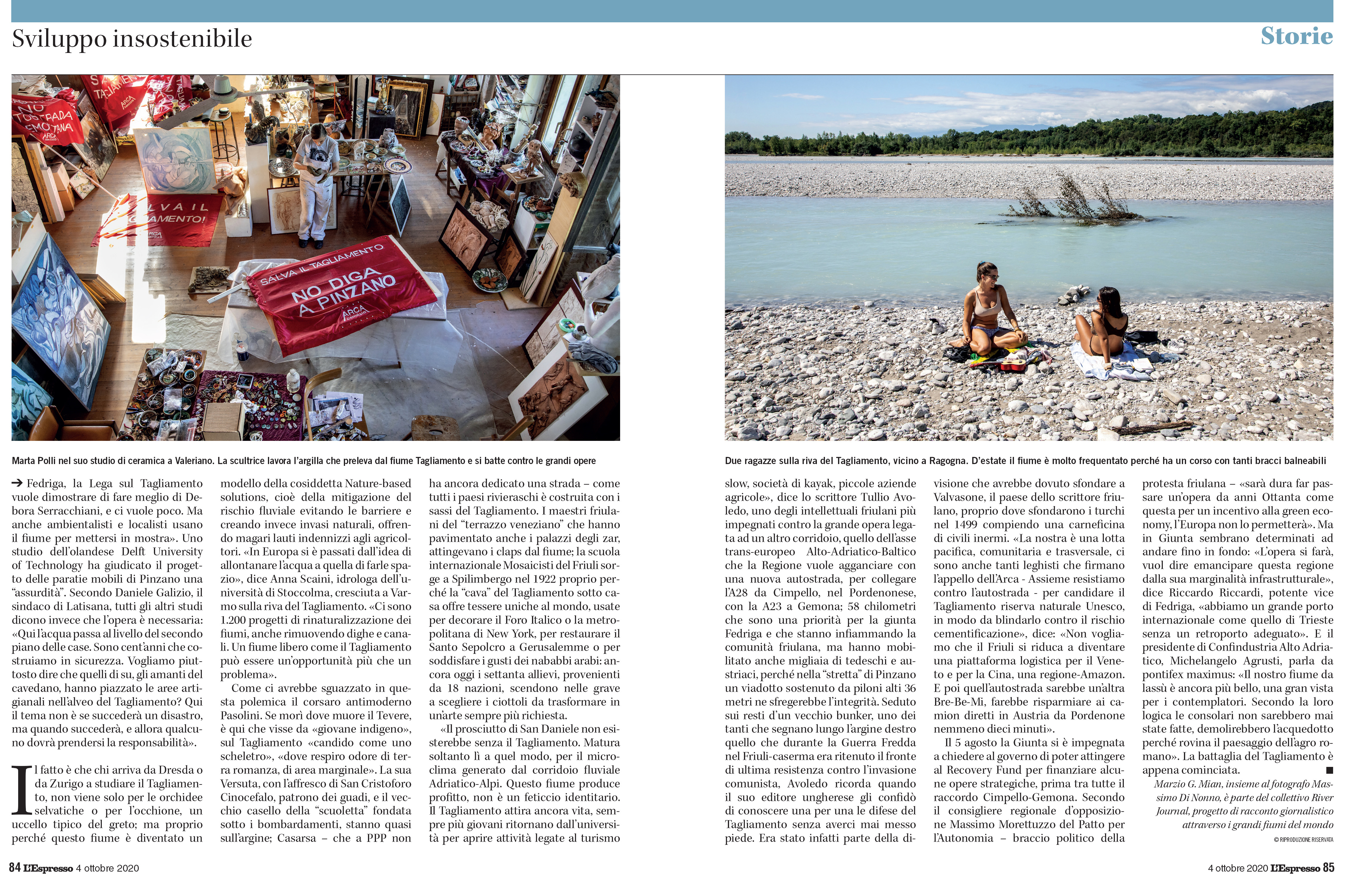 Seduto sui resti d’un vecchio bunker, uno dei tanti che segnano, lungo l’argine destro, quello che durante la Guerra Fredda nel Friuli-caserma era ritenuto il fronte di ultima resistenza contro l’invasione comunista, Avoledo ricorda quando il suo editore ungherese gli confidò di conoscere una per una le difese del Tagliamento senza averci mai messo piede, era stato infatti parte della divisione che avrebbe dovuto sfondare a Valvasone, proprio il paese dello scrittore friulano, proprio dove sfondarono i turchi nel 1499 compiendo una carneficina di civili inermi. “La nostra è una lotta pacifica, comunitaria e trasversale, ci sono anche tanti leghisti che firmano l’appello dell’Arca - Assieme resistiamo contro l’autostrada - per candidare il Tagliamento riserva naturale Unesco, in modo da blindarlo contro il rischio cementificazione”, dice. “Sono due visioni di sviluppo opposte, non vogliamo che il Friuli si riduca a diventare una piattaforma logistica per il Veneto e per la Cina, una regione-Amazon. E poi quell’autostrada sarebbe un’altra Bre-Be-Mi, farebbe risparmiare ai camion diretti in Austria da Pordenone nemmeno dieci minuti”.